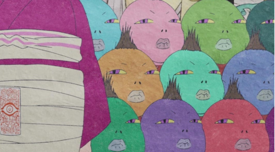 Mononoke,60 an animated series that is reminiscent of this colourful fever dream shows how this is no novelty to the characters. Even the lack of a linear plot goes hand in hand with the chaotic unexplained colour. I like to think this is how Dorothy viewed Oz when she first arrived. I am alienated, despite recognising all the colours. I am just as alien as the “outer space”61 drag queens crash landing into Australia’s outback. In “The Zahiki Warashi” episode of Mononoke we do not fall into colour, we are birthed into colour.